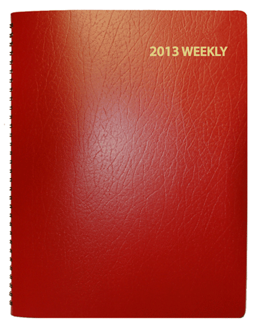 Leatherette cover. Wire-bound. One week per two-page layout; with 7 am to 9 pm quarter-hourly lined format. 3 year calendar, reference sections, and telephone and address entry pages. Includes weekly format — 2015 year.