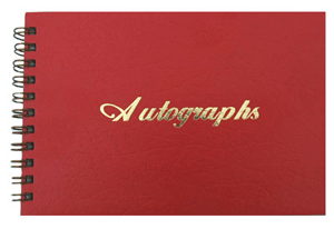Features : You have the option of choosing which color autograph book to the two choices of stock imprints (one is 'Autographs' and the other is 'My Autograph Book' with stars) to the color of the foil stamp used. Available in 10 Different Stock Colors. If you are looking for more colors, please give us a call. 7" x 4 3/4" (Closed Size) with 50 Sheet Pad included.