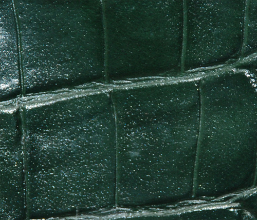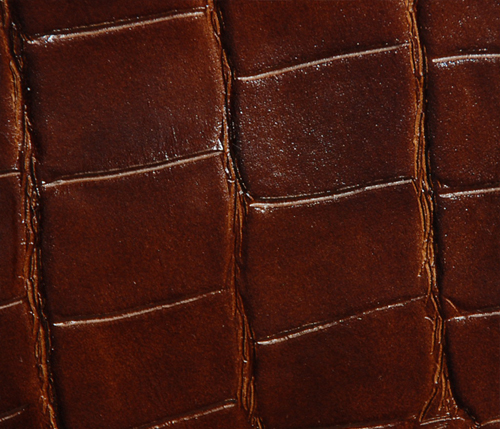 Hand-crafted from fine genuine leather, with ribbon corner miters and matching moiré backs. Easel stand and glass photo protector. Our stock colors are luggage brown, black and hunter green alligator, and jade pebble lizard. Please call us at 800-3310-2723 for production times on custom colors and textures.